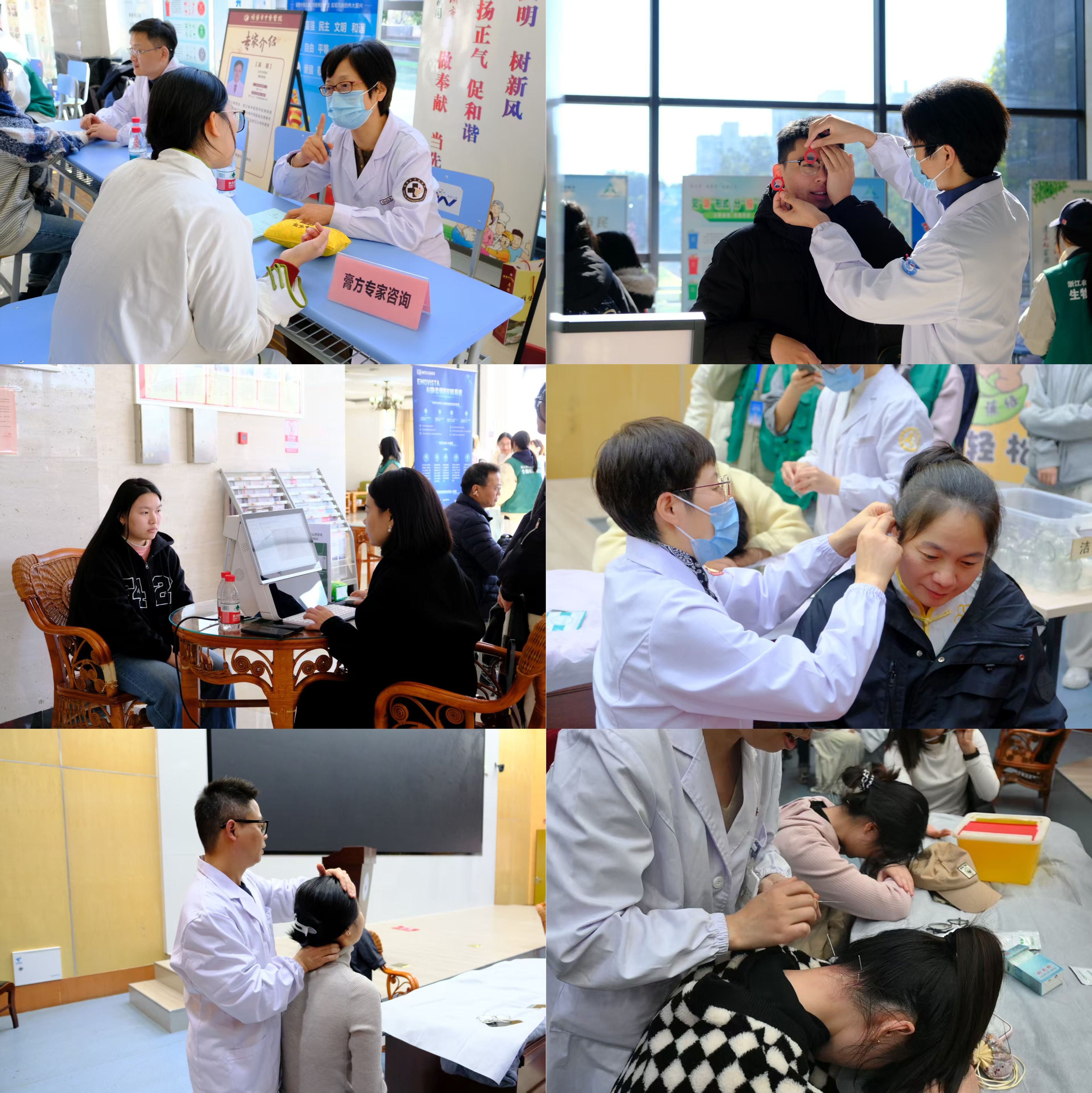 本次活动设有“传统文化体验”与“名医义诊服务”两大专区。传统文化体验区内,师生们亲手制作养生手作、品鉴地道膏方与药茶,并通过识百草、学疗法等互动环节,沉浸式体验中医文化。义诊专区汇聚了诸暨市中医医院、中心医院、妇幼保健院及第五人民医院等多家权威医疗机构的专家,现场提供膏方咨询、针灸推拿、中医特色护理、健康及面部管理、近视飞秒咨询及睡眠障碍疏导等全方位医疗服务。现场引入的AI情绪识别系统,更为活动增添了一抹亮眼的“科技蓝”。