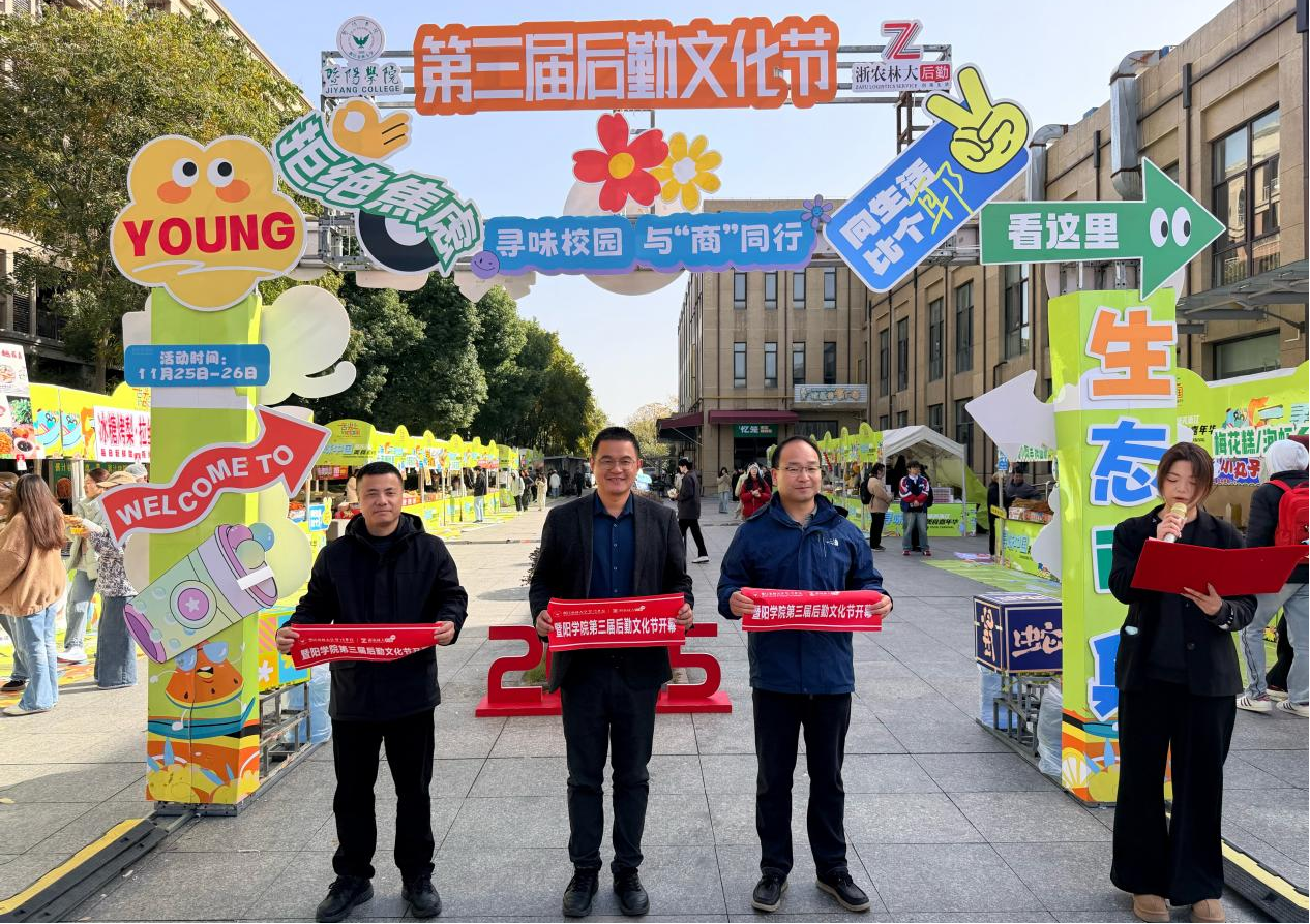 11月25日,金沙2004路线js5第三届后勤文化节开幕式在金沙2004路线js5一食堂广场举行。吴越公司副总经理夏泉、商学院党总支书记张佩成、后勤中心诸暨服务部部长杨帆参加活动,与100余名后勤员工代表、学生代表共同见证活动启幕。