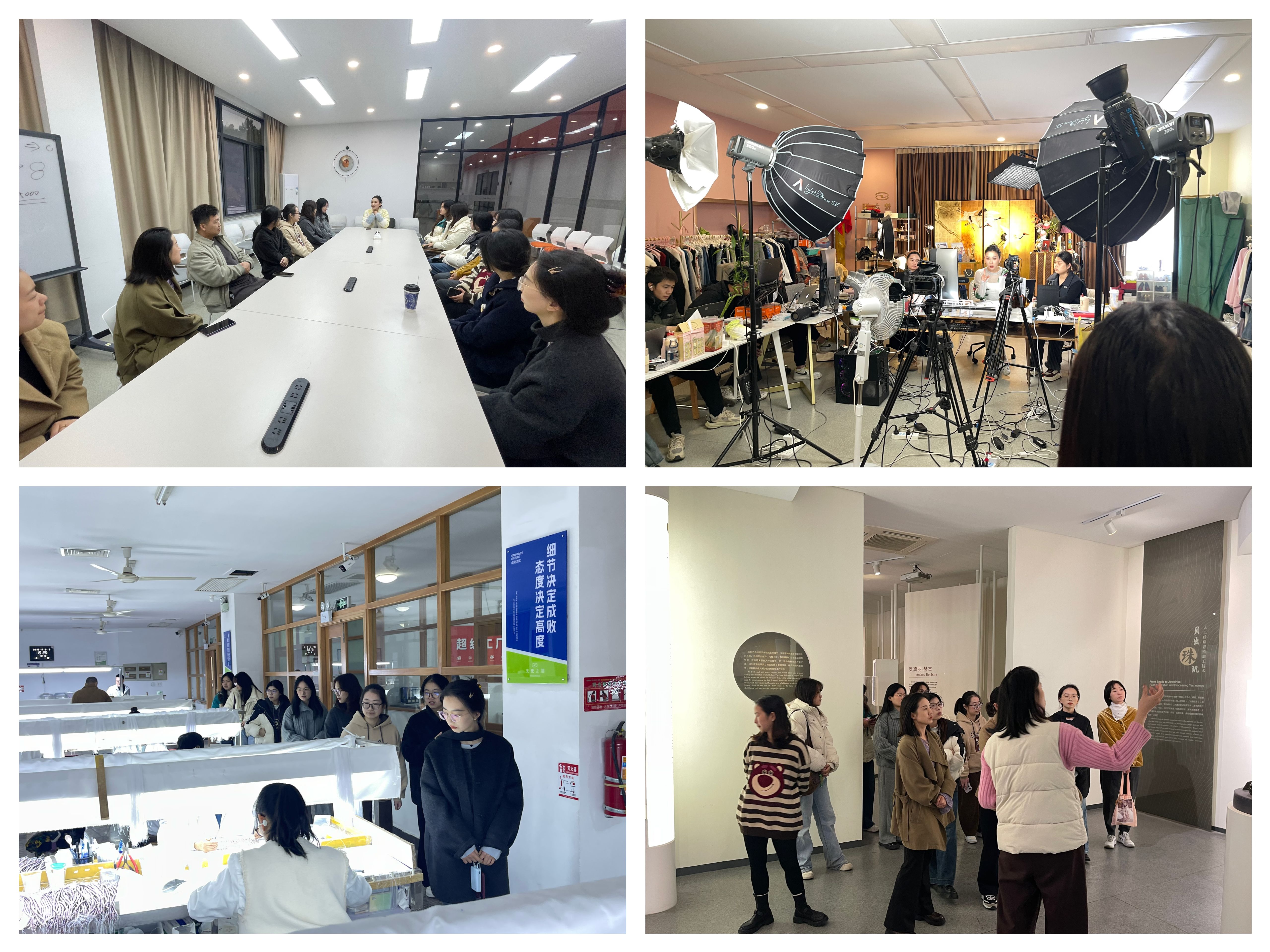 为增强体验,本次活动还组织师生走进天使之泪产品车间,实地观摩珍珠抛光、分选与加工的全流程,感受工艺与技术的交融;同时安排直播现场观摩,近距离学习主播的专业展示与互动技巧。