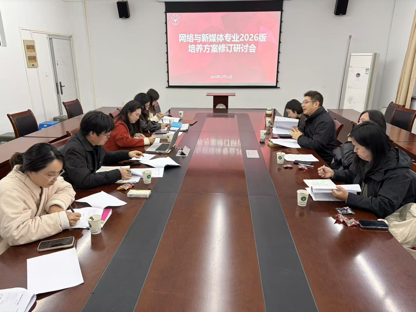 12月11日,人文学院、马克思主义学院在人文3502会议室召开网络与新媒体专业2026版人才培养方案修订研讨会。