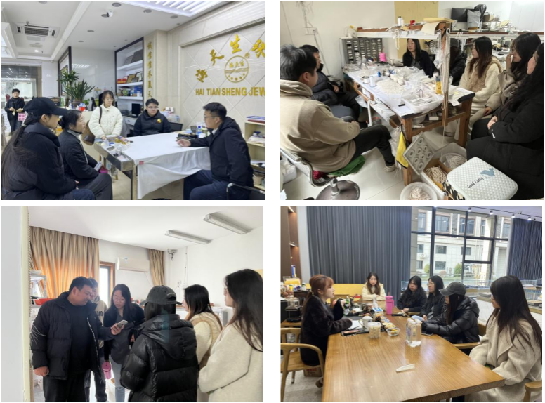 为深化产教融合,精准对接产业需求,拓展学生实践与就业渠道,12月12日至17日,晨晓艺术与设计学院(中国珍珠学院)副院长王静敏带领师生团队,先后走访海天生珍珠、汐娜珍珠、颂珍珠等多家企业,深入开展“访企拓岗”专项调研。
