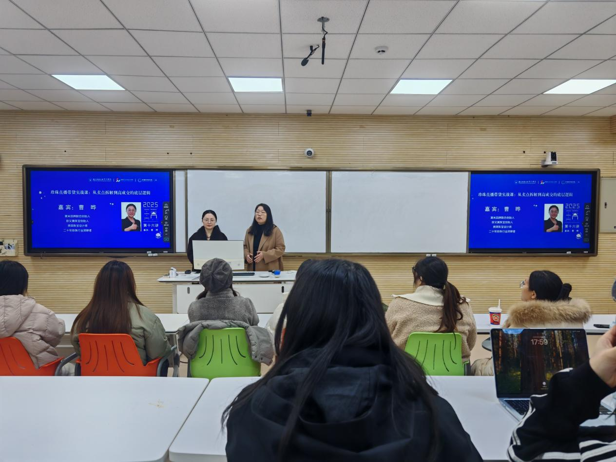 为深化产教融合育人实效,提升学生在新媒体环境下的珍珠产品营销实战能力。12月23日,中国珍珠学院举办了题为“珍珠直播带货实战:从卖点提炼到转化提升”的专题讲座。讲座邀请黛米品牌联合创始人、珍又美珠宝创始人、资深珠宝设计师曹晔担任主讲。