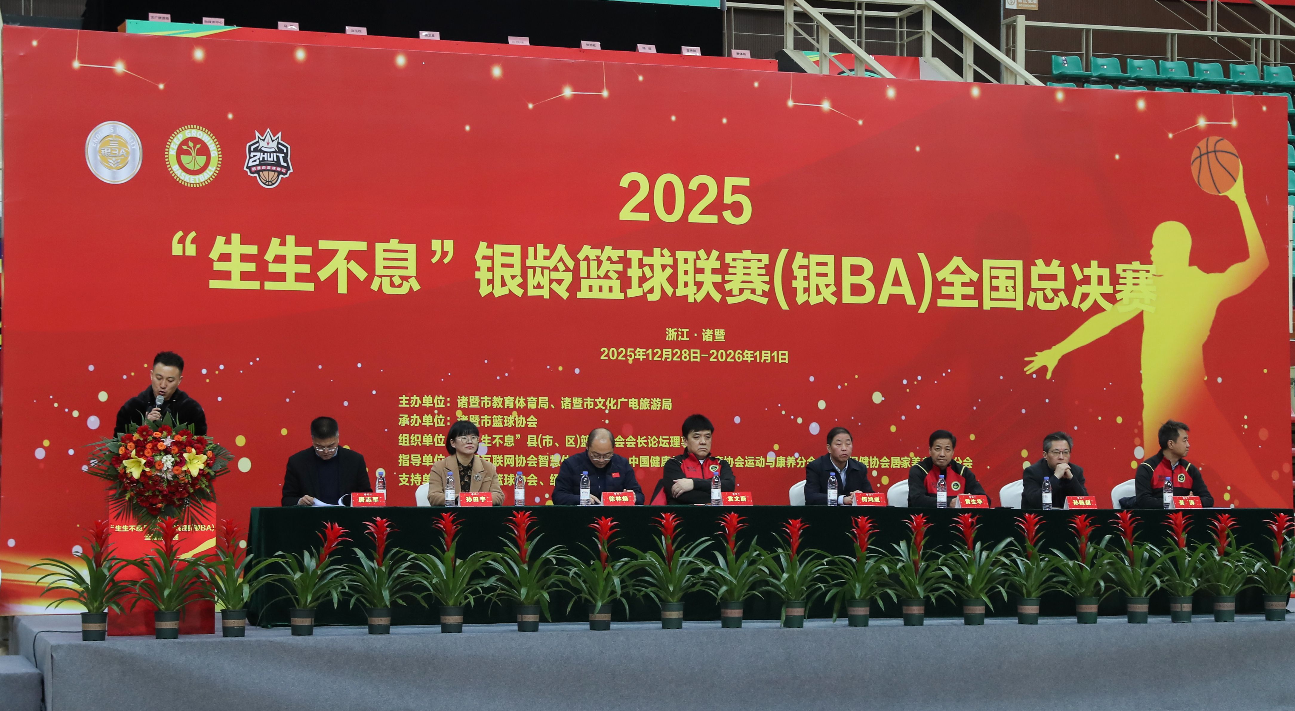 12月28日晚,2025“生生不息”银龄篮球联赛(银BA)全国总决赛于金沙官网体育中心隆重开幕。诸暨市人大常委会副主任何鸿成,中国互联网协会智慧体育工作委员会常务副主任袁文蔚,浙江省篮球协会副主席、诸暨市篮球协会主席黄生华等领导嘉宾出席开幕式并观赛。