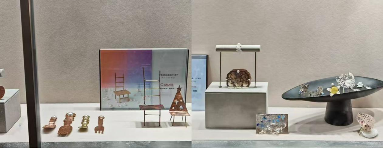 此次课程展不仅是教学成果的集中展示,更是学院产教融合育人模式的生动实践。各门课程以实践为核心,融合理论讲解与动手操作,引导学生全方位感受珍珠工艺的魅力与创新潜力。在专业教师的指导下,同学们通过精研金工技艺、运用AI工具设计表达、尝试跨界材质融合等多元路径,在沉浸式学习中深化了对珍珠工艺的理解与转化运用,既让珍珠在金属衬托下绽放光华,以数字思维拓展创意边界,也借助多样媒材为珍珠文化注入新的美学内涵。