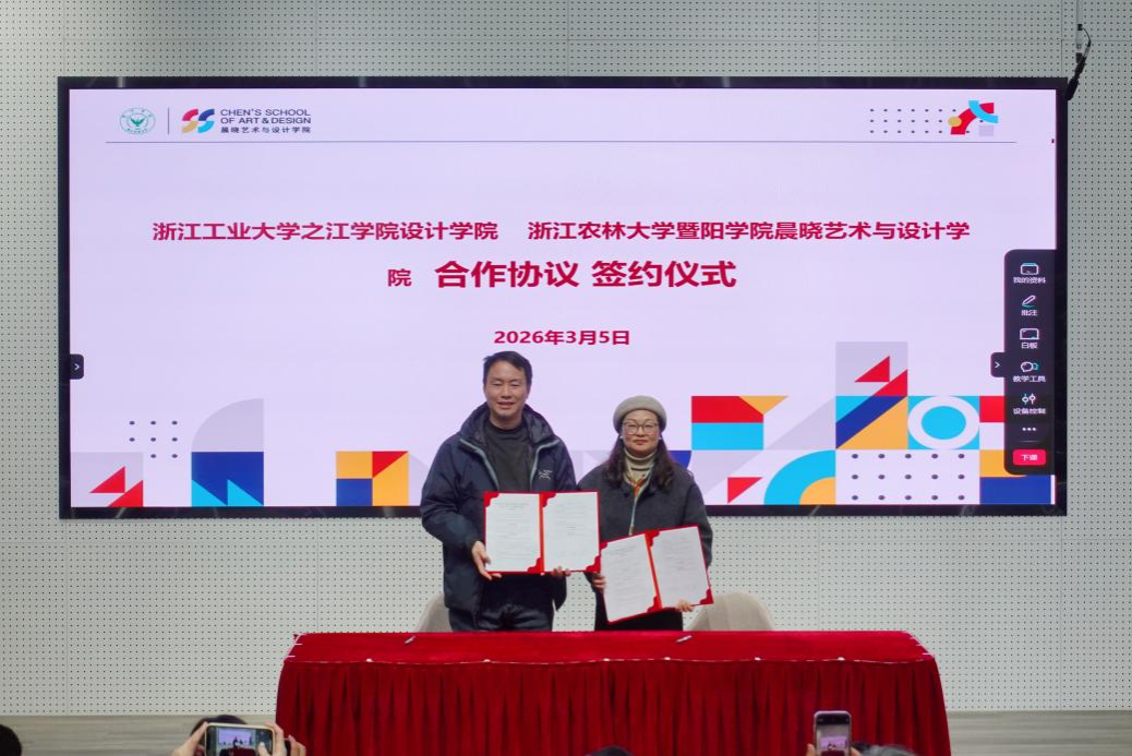 夏颖翀介绍了之江学院设计学院的基本情况,分享了之江学院设计学院在产教融合、学科建设、社会服务等方面的探索与实践。宗晓晓高度评价此次交流的意义。他指出,两院在设计教育领域各具优势,期待通过此次签约,能进一步推动资源共享,共同探索设计人才培养的新路径。