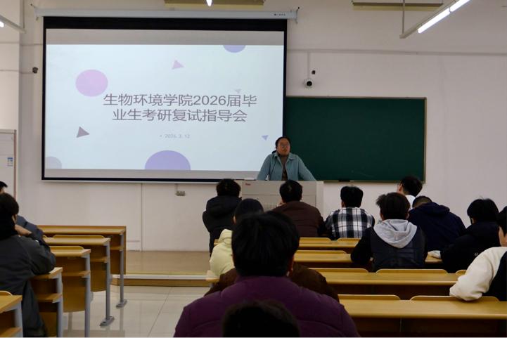 为助力考研学子从容应对复试,提升录取竞争力,3月12日,生物环境学院举行2026届考研复试指导会。生物环境学院院长严国兵,各专业负责人、毕业班辅导员及全体考研上线学生参加会议。会议由生物环境学院党总支书记徐春霞主持。
