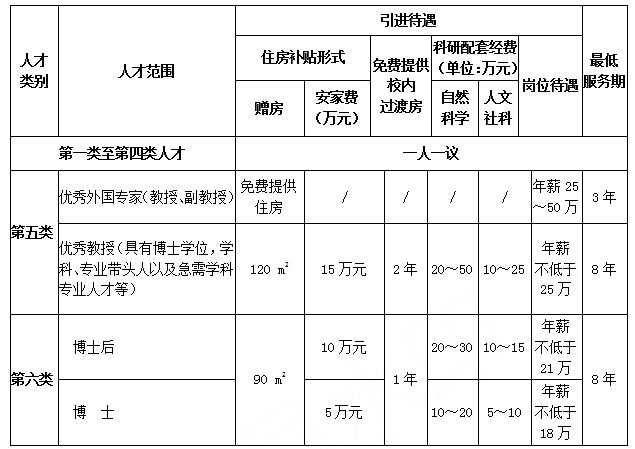 二、人才引进类别与相关待遇