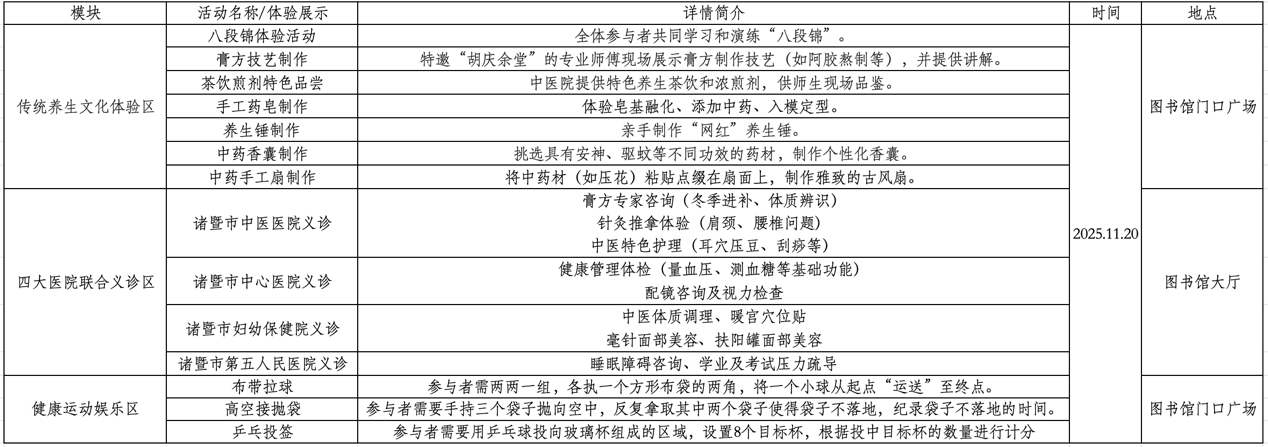为响应“健康中国”号召,普及中华优秀传统养生文化,提升我校师生健康意识与自我保健能力,通过一系列生动、有趣的互动体验和专业的医疗咨询,让广大师生“零距离”感受中医药文化的魅力,学会科学养生,缓解学业与工作压力,特举办金沙2004路线js5第十一届健康文化节。现将有关事项通知如下: