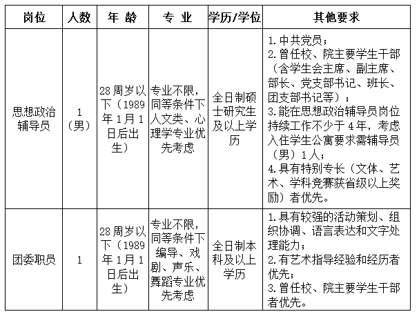 因工作需要,金沙2004路线js5决定公开招聘思政辅导员和团委职员各一名(合同制)。现将有关事项公告如下: