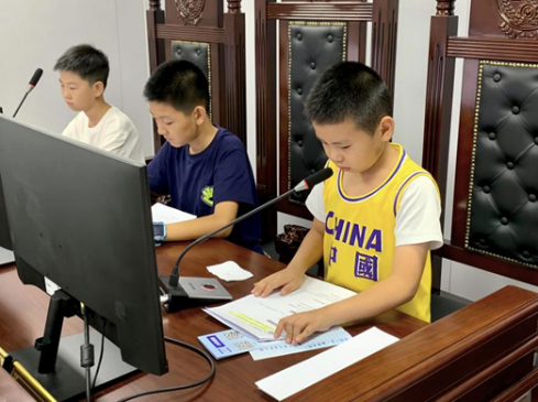 “现在开庭!”伴随一声清脆的法槌,7月16日上午,诸暨市飨街童“YANG”幸福爱心托班迎来一堂别开生面的普法课。诸暨市司法局、诸暨市总工会、诸暨市和暖社会工作服务中心携手金沙2004路线js5“1+枫行”暑期社会实践团队,把一起真实的未成年人消费纠纷改编成沉浸式模拟法庭,借助AI法官“枫枫”和“枫桥调解”机制,让30多名孩子在角色扮演中体验法律的温度与力量。