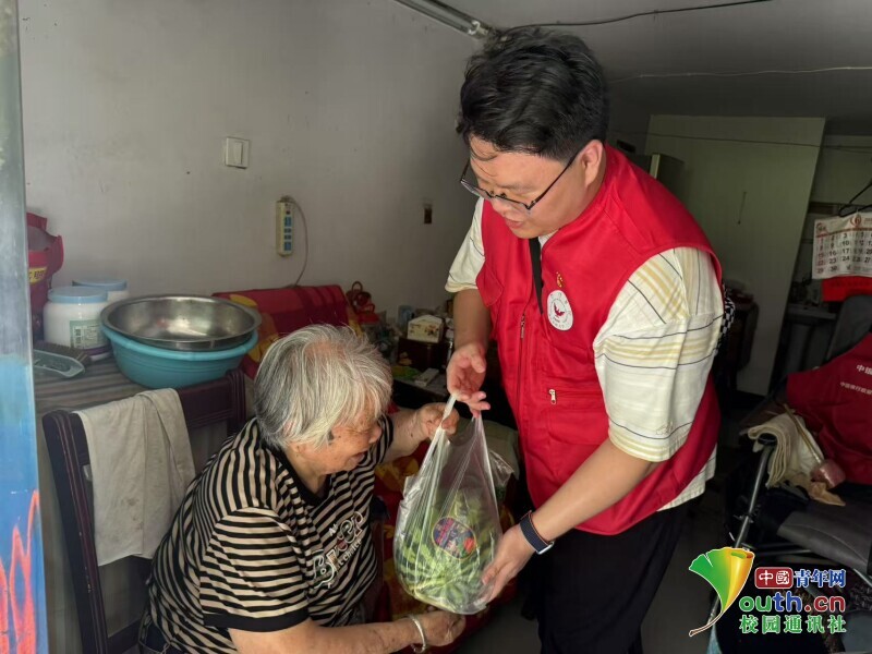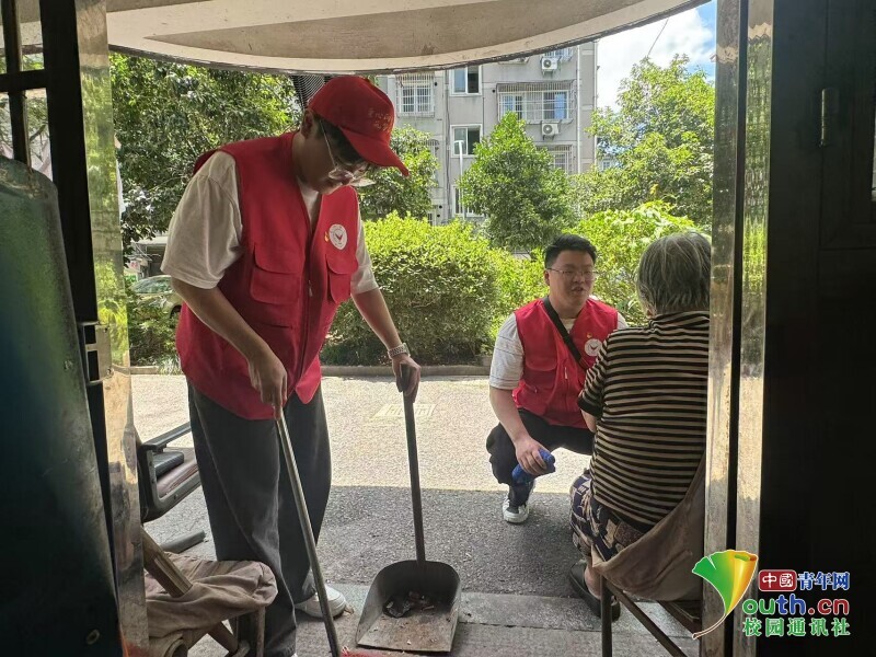 图为实践团成员在江东社区利用课余时间跟随社区工作人员走访辖区内行动不便的老人并提供帮助。 李侃远 供图