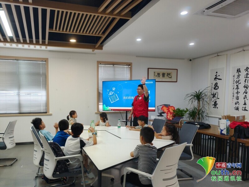 图为实践团成员在永昌社区针对地球自转原理的相关问题对小朋友提出提问。李侃远 供图