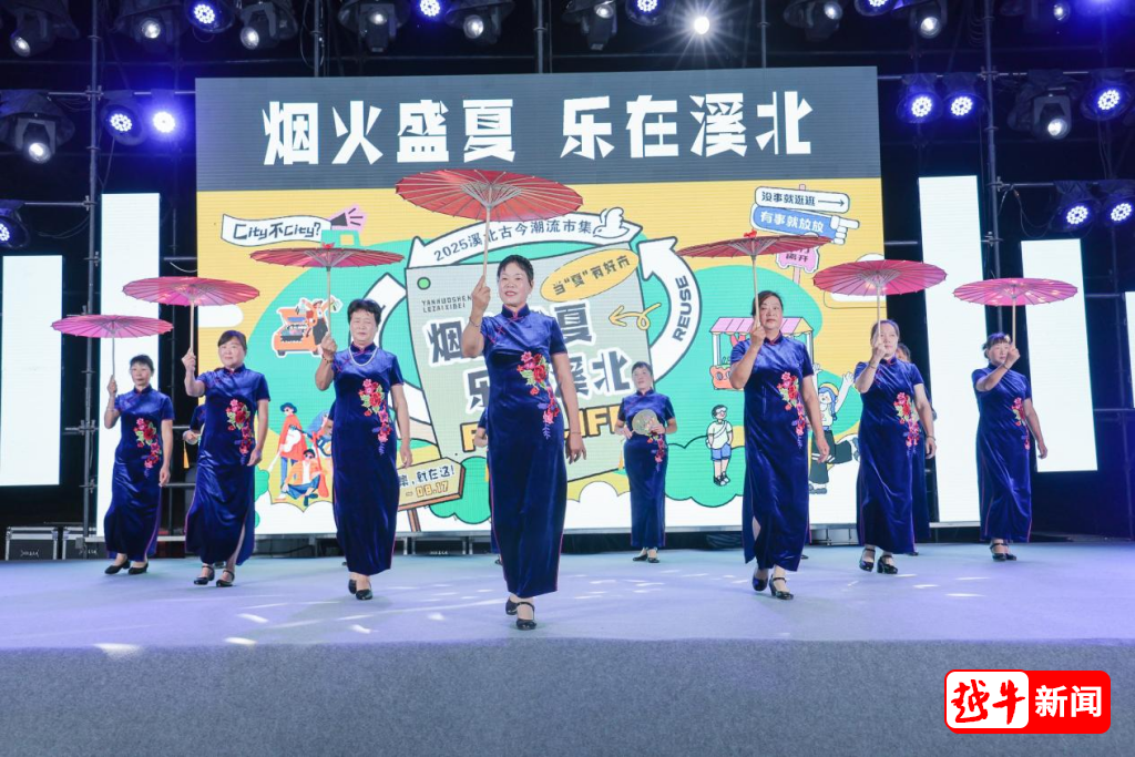 主舞台上,旗袍走秀成为夏夜最亮眼的文化名片。由村民组成的“溪北雅韵”旗袍队身着定制旗袍款款走来。聚光灯下,村民们自发高歌,与游客们一起舞动,唱出了对生活的热情,舞出了对乡村振兴的期盼。