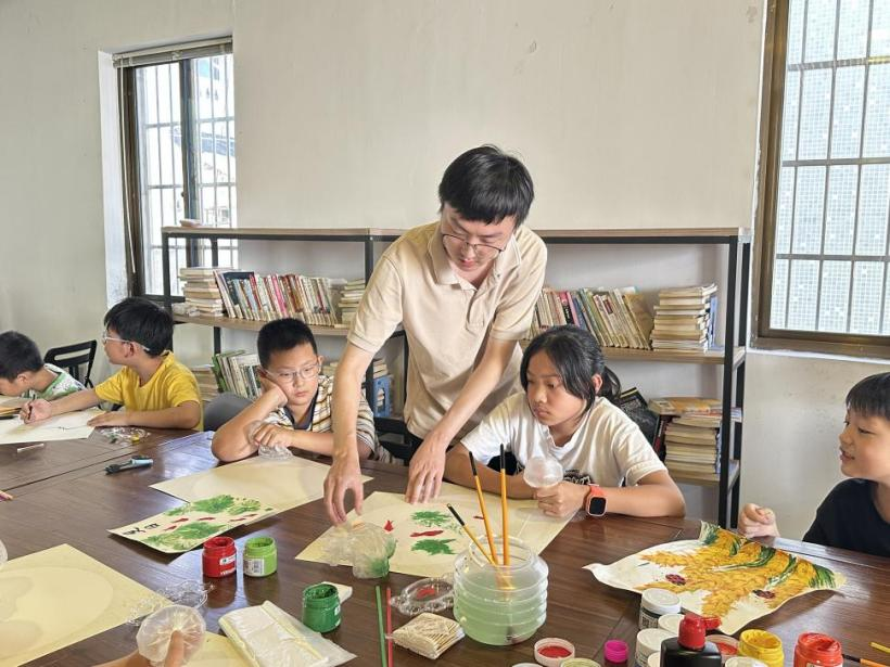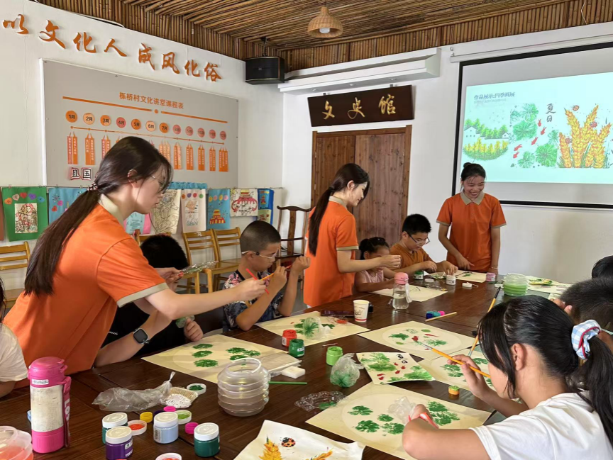 来自金沙2004路线js5的“枫艺小队”实践团通过生动有趣的视频,引领孩子们走进王冕的艺术世界。活动创新性地引入传统拓印技法,让“王冕的四季”在纸上缓缓呈现。这种新颖的绘画方式瞬间点燃了孩子们的热情,他们瞪着好奇的眼睛,不时发出阵阵惊叹。