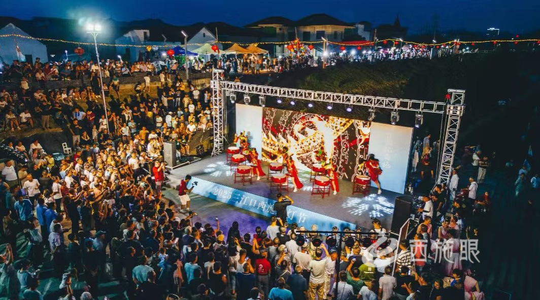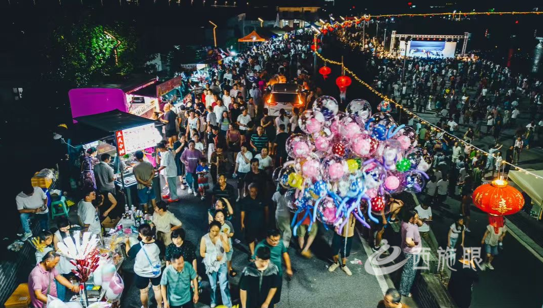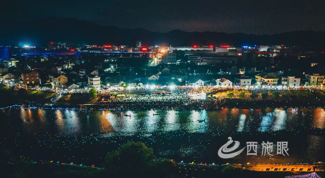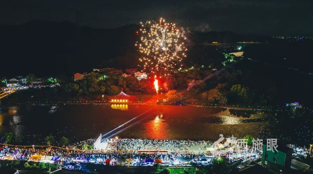 当晚还有舞蹈、越剧、黄梅戏、歌曲等形式多样的文艺表演,以及绚丽多彩的烟花秀,吸引万余名游客参与。经粗略估算,带动各类消费超10万余元。