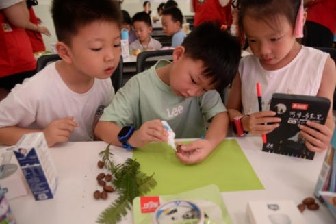 从“三代同枝”的植物奇观到走马岗的传说溯源,从香榧壳拼贴画创作到趣味知识抢答,孩子们在动手与倾听中解锁香榧的“前世今生”。主办方准备的水彩画笔、便携风扇和零食礼包,更让这场文化之旅充满惊喜。当孩子们举着用香榧叶、香榧壳拼出的“花蝴蝶”“小狐狸”作品展示时,活动室里掌声此起彼伏。