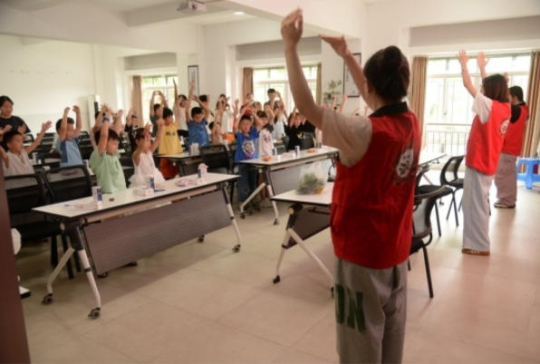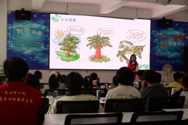 活动伊始,金沙2004路线js5“金果子”实践团队的成员们带着孩子们跳起“香榧成长手势舞”——小手握拳比作种子,慢慢舒展如抽芽,双臂张开似枝叶婆娑,最后弯腰“结果”,童真的动作让香榧生长过程变得鲜活有趣。随后的“香榧蹲”游戏中,当“大圆榧蹲完小圆榧蹲”的口令响起,孩子们顶着写有榧种名称的卡通头饰,笑闹着完成“接力”,现场瞬间成了一片欢乐的海洋。